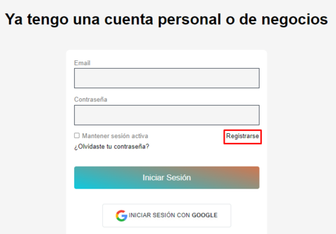 2. Se muestra un formulario de Inicio de sesion,si aun no tienes cuenta pulsa la opcion "Registrarse"