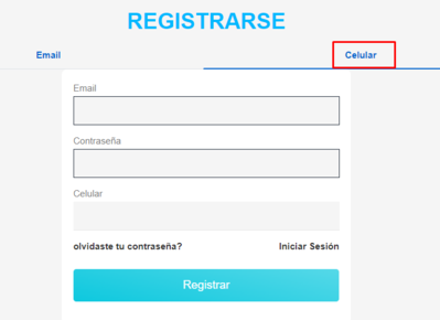 2. se muestra un formulario de inicio de sesion,clickear la opcion "Registrarse" y pulsar en la opcion "celular"
